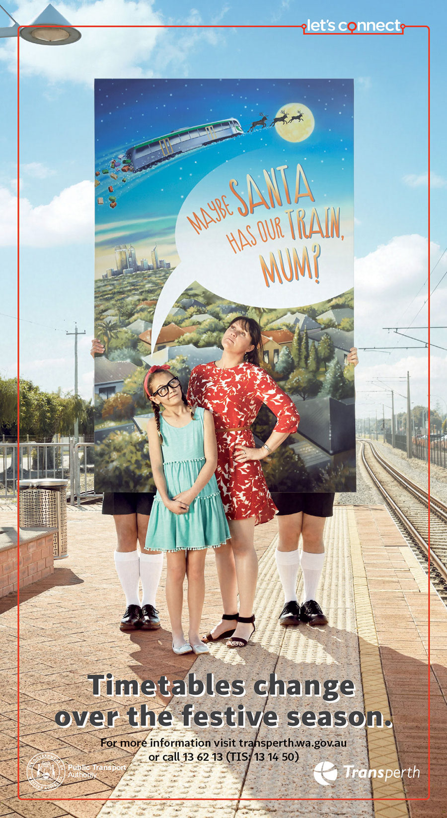 Posters on Trains! Over the course of a couple of years, we made many varied posters for Transperth - Perth's train network.